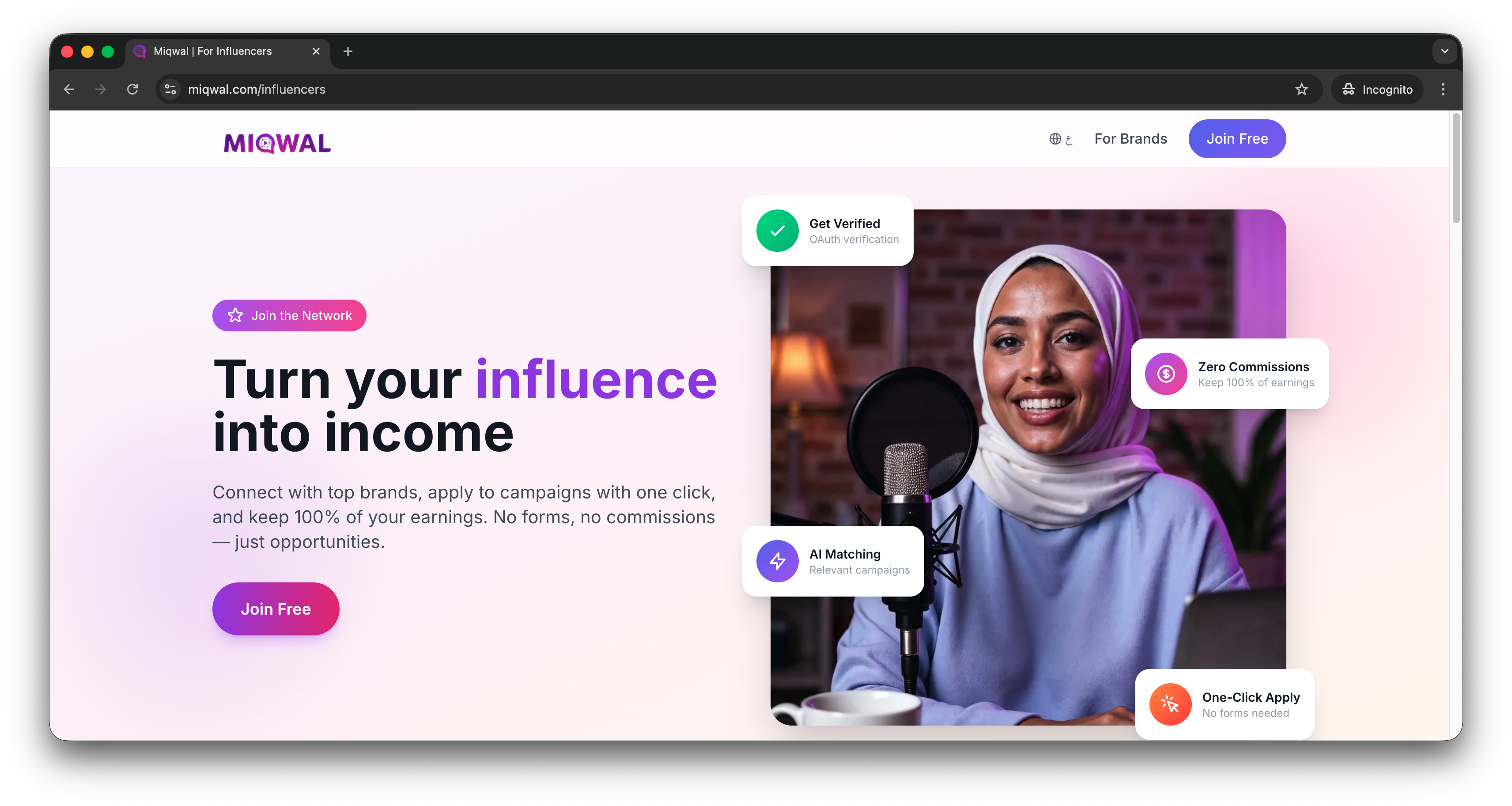 نسعى لأن نكون المنصة الرائدة عالمياً لربط العلامات التجارية بالمؤثرين المناسبين، من خلال الذكاء الاصطناعي المتقدم وبيئة شفافة تضمن نجاح الحملات التسويقية للجميع — في كل مكان في العالم.
