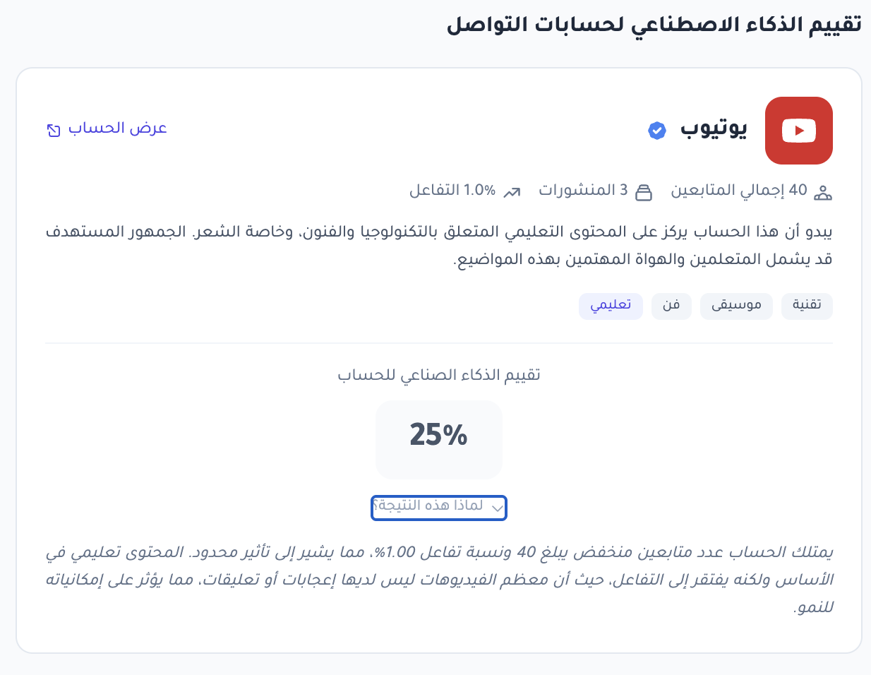 اكتشاف التخصصات: نكتشف تلقائياً مجالات المؤثر وتخصصاته من محتواه